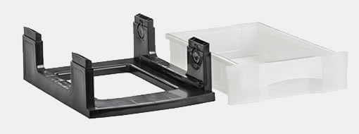 Los modelos con carcasa negra y cajones traslúcidos están fabricados en polipropileno 100% reciclado y reciclable.